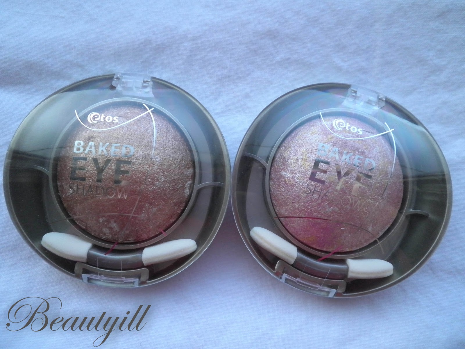 Afgelopen week kocht ik twee baked eyeshadows bij de Etos. Ze hebben al langere tijd drie kleuren in de collectie maar nu hebben ze er drie marble oogschaduws aan toegevoegd. Deze vond ik er een stuk interessanter uitzien en in combinatie met de kortingsacties kon ik ze niet laten liggen! Ze zijn te koop in drie kleuren, roze, bruin en grijs en zijn 1 euro duurder dan de niet marble variant. Afgelopen week kreeg ik stickers thuis om op je product te plakken voor korting, plus had etos zelf een actie op de oogcosmetica namelijk 25%! Totaal betaalde ik nu voor deze twee oogschaduws €6,55 i.p.v. €10,00. Normaal kost de marble €4,99 en de normale €3,99.