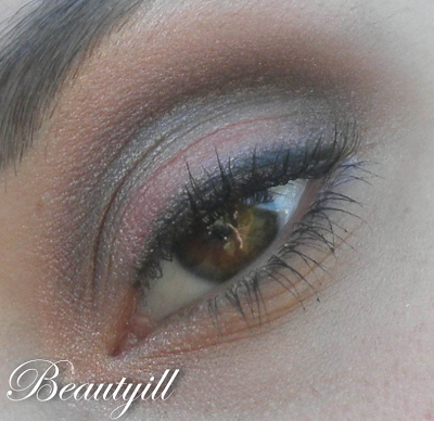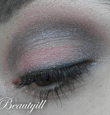 Daarom besloot ik het te combineren met een grijsachtige tint en alleen roze op het bewegend ooglid te doen. Niet op het totale bewegend ooglid maar echt alleen in het midden.