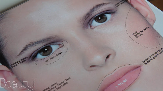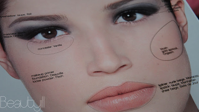 Deze foto’s geven de indeling van het boek goed weer. Links zie je telkens een foto van een model zonder make-up en rechts met een prachtige look. Hiertussen zit een doorzichtig vel waarop omschreven staat wat waar is aangebracht. Super handig, zo kun je de look echt perfect bestuderen!