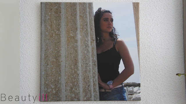 Het formaat dat je hier ziet is 40 x 40cm, vond dit een mooie maat omdat het niet overdreven groot is maar toch voldoende aanwezig op je muur.Het voordeel van zo’n foto op canvas is dat je direct klaar bent. Moet er niet aan denken om ook nog een lijst uit te moeten zoeken, dit vind ik vaak zo enorm persoonlijk.