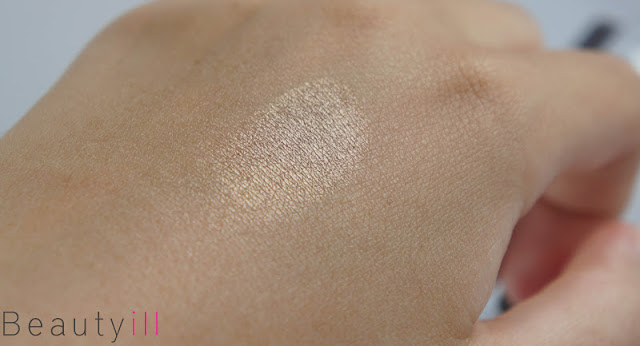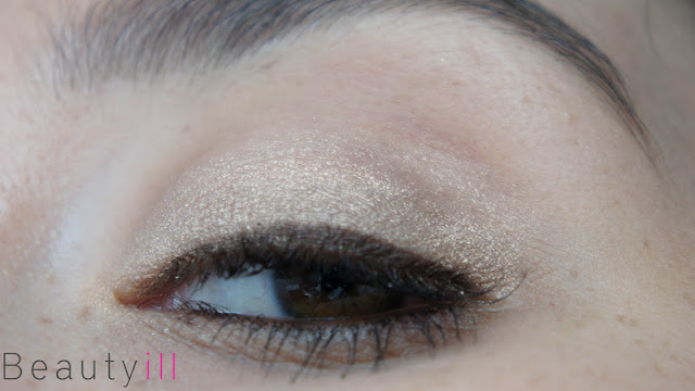 Het is een hele mooie licht goud/bruine shimmery tint die wat mij betreft erg draagbaar is. Maar wat hem zo bijzonder maakt is dat hij in sommige weerspiegelingen een bijna taupe/grijs achtige gloed krijg. Ik kreeg dit lastig op de foto maar bij de ingezoomde variant zie je linksboven in beeld een beetje wat ik bedoel.