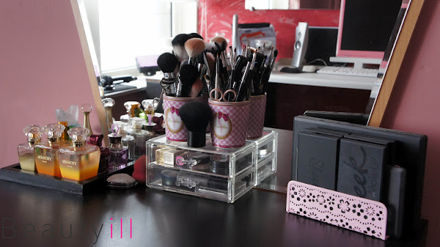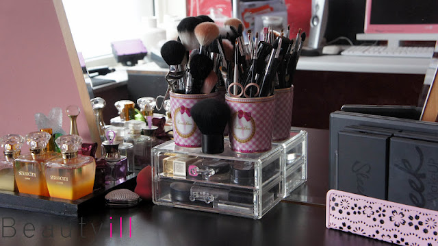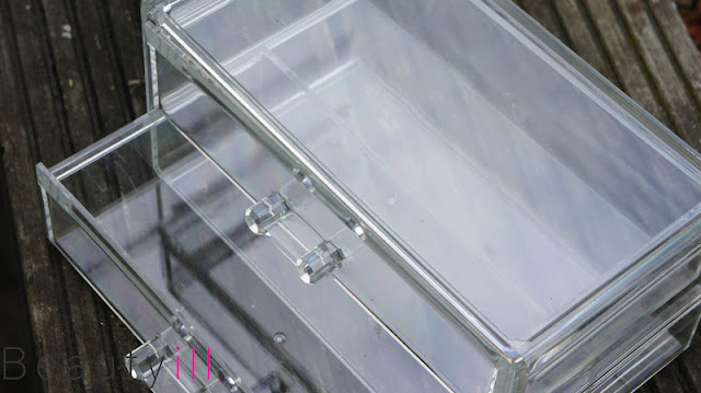 Tegenwoordig zie je steeds vaker op tv dat (vooral Amerikaanse) celebrities hun make-up opbergen in doorzichtige lades. Behalve dat het er chique uitziet is het natuurlijk ook handig omdat je direct alles ziet liggen, kortom ik wilde dit ook.