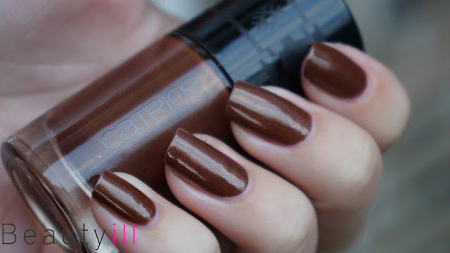 Het tweede lakje wat ik uitkoos is C03 Urban Outrider, een mooie chocolade kleur met ook weer zo’n bijzondere gouden gloed. Bij de groene versie valt deze wat meer op dan bij dit kleurtje. Ook dit lakje dekte prima in twee laagjes.