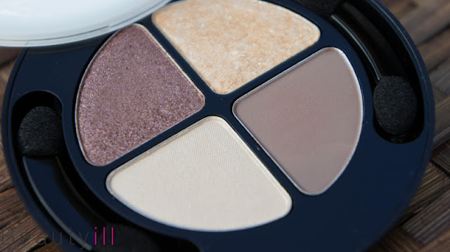 Et voilà daar verschijnen vier mooie kleuren en twee spons applicators. Helaas is niet alles perfect want door de vorm van het palette zijn de applicators half rond en dit is wat vervelend om vast te houden.
