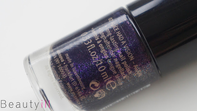 02 Alice Had A Vision – Again, is duidelijk het zusje van Jacob’s Protection want je zou dit de paarse variant kunnen noemen. Door de kleur valt het wat meer op dat er verschillende kleurtjes in zitten qua glitter. Eveneens een prima dekkend lakje.03 A Piece Of Forever, is wat mij betreft dus echt een buitenbeentje. Qua finish is dit natuurlijk niet te vergelijken en is dit meer een foil finish, hierdoor is hij wat streperig maar dit ‘mag’ dan ook. Het lakje dekte wel goed in twee laagjes trouwens.