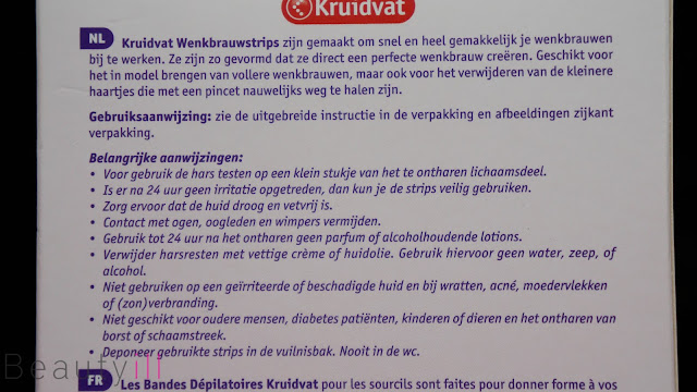 Het product belooft ook kleine haartjes goed te verwijderen die je met het pincet amper kan verwijderen. Helaas zijn ook deze na gebruik bij mij nog steeds zichtbaar. Sowieso neemt het niet alle haren mee zoals de harsstrips voor het lichaam wel deden (ook van Kruidvat).