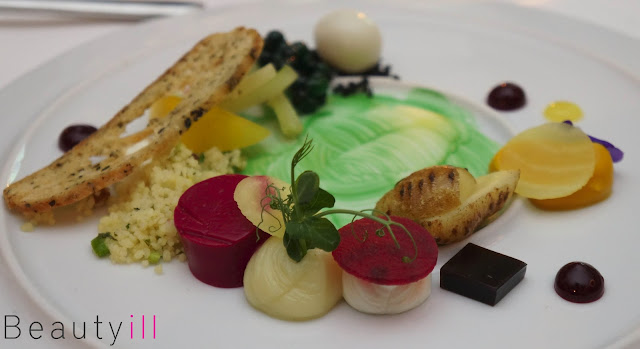 Het voorgerecht, vegetarisch hoofdgerecht en heerlijke toetje. Helaas moest ik het toetje snel naar binnen werken aangezien ik anders de trein naar Eindhoven niet meer ging halen. De treinen richting Maastricht leken volgens de eerste berichtgeving uit te vallen. Uiteindelijk ben ik thuis gekomen met een trein die niet eens op het bord stond!