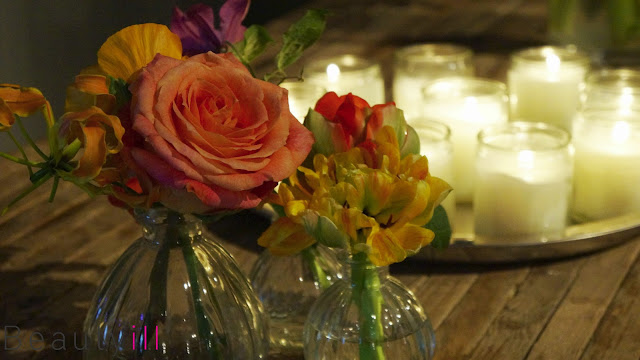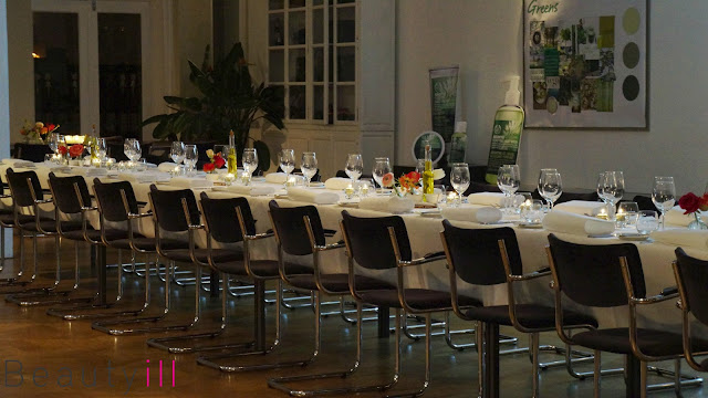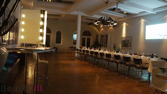 De bedoeling was dat we dus een drie gangen diner zouden krijgen en tijdens/tussen de gangen door stonden er leuke dingen op het programma. Een mooie slideshow met prachtige kleuren, visagisten die de nieuwe kleuren op ons uittesten en een modeshow tijdens het toetje. Ook werden er ondertussen kaartjes uitgedeeld met leuke vragen zodat we elkaar wat beter leerde kennen.