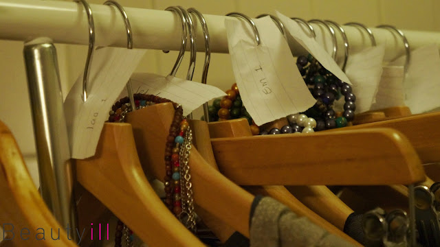 Nóg verder achter de schermen kan niet, hier hingen de kledingstukken voor de modellen al klaar.