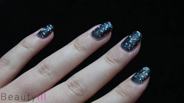 Tot slot 507 Black Jack. Deze lak lijkt erg op China Glaze Some like it haute en Rimmel Diamond Dust, alleen is deze lak duidelijk intens zwarter van kleur waardoor de grove holografische glitters er nog meer uit springen.