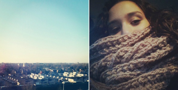 Rechts zie je mijn nieuwe sjaal en een klein stukje van mijn hoofd. Juist dat heb je goed gezien, de sjaal is enorm! Echt een uitkomst want ik moet mijn nek momenteel goed warm houden van de therapeut.