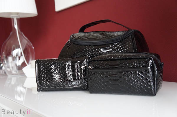 De kleine box toilettas had ik nog niet vaak gezien, maar is wel ideaal qua vorm. Persoonlijk vind ik dit een mooie maat voor in mijn handtas als ik wat langer weg ga, hier kan net wat meer in dan in de gewone make-up toilettas.