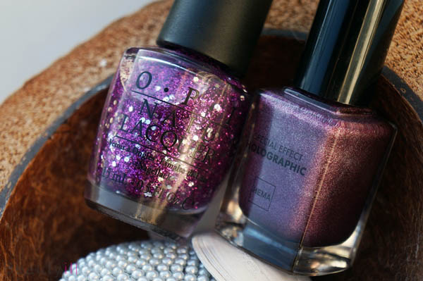 Gisteren liet ik je de mooie holo’s van Hema al zien, vandaag een NOTD gecombineerd met OPI Divine Swine!