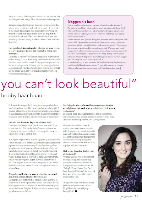 Deze maand staat Beautyill in het F.E.S. magazine, een magazine dat zes keer per jaar uitkomt en bedoeld is voor fibromyalgie patiënten. Aangezien je hier lid van moet zijn en het niet gewoon even bij de Bruna kunt kopen deel ik hier graag het interview met jullie! Want het was voor mij een hele eer en het is toch weer een stukje extra erkenning.