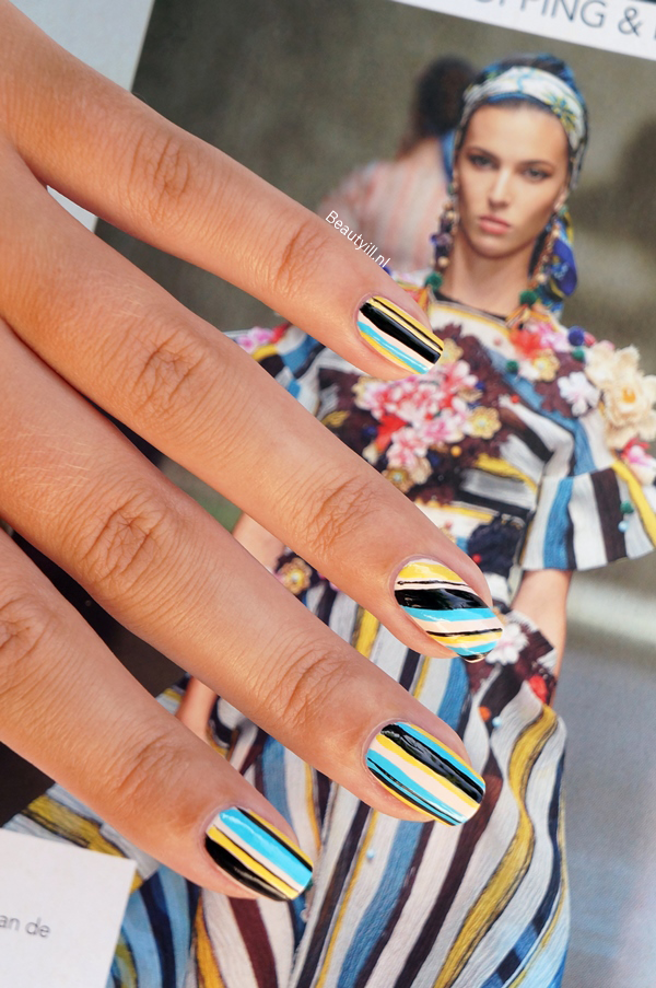 Deze zomer vind je overal drukke (aztec) prints, leuk maar sommige zijn wellicht wat lastig om na te maken op je nagels als je een beginner bent. Vandaag een nail art waarbij we enkel strepen zetten in verschillende diktes en als je goed kijkt naar mijn voorbeeld: de jurk, hoeft het niet eens zo netjes.Wat heb je nodig/wat heb ik gebruikt?