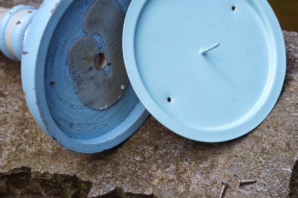 Begin met het demonteren van de kandelaar, kunnen er dingen vanaf dan verwijder je deze eerst. Ik heb de schroeven eruit gehaald waardoor de metalen punt los kwam. Zo kun je flink uit je dak gaan tijdens het schuren en hoef je niet zo uit te kijken.