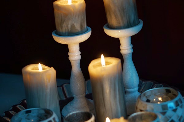 Helaas is de zomer nu toch echt voorbij maar een echte straf vind ik dit niet. In de herfst is alles altijd zo lekker knus: warme thee, sjaals en uiteraard kaarsjes. Maar omdat ik ook binnen soms wat glamour wil besloot ik deze saaie kandelaars eens in een nieuw jasje te steken.