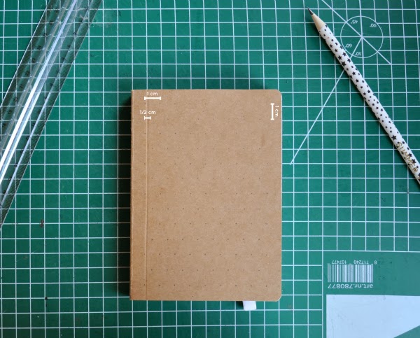 Allereerst begon ik met een rastertje van potloodpuntjes zodat ik wist waar de gaatjes moesten komen. Mijn notitieboekje is 10 cm breed en 14 cm hoog. Ik heb alles met een afstand van 1 cm gedaan. De buitenste puntjes staan 1 cm van de rand van het kant af. De afstand tussen de puntjes is ook 1 cm. De tweede rij van de puntjes heb ik een halve cm naar rechts opgeschoven zodat er een driehoekjespatroon ontstaat en geen vierkantjespatroon.
